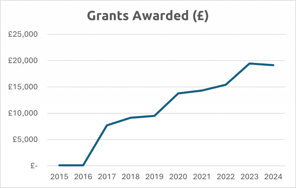 - Nearly £500,000 awarded in Grants to Organisations in last ten years.