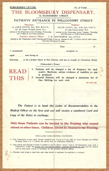 The Bloomsbury Dispensary for the Relief of the Sick Poor