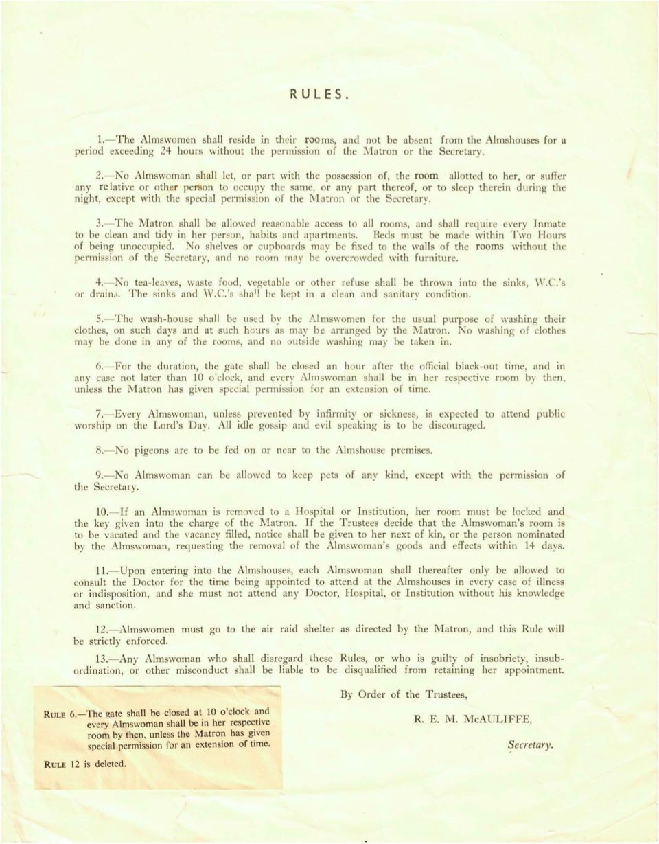 - Miss Washington Cornelius Winter Ashfield bequeathed £2,000 Consols in 1838 to make monthly payments to the poor widows in the Almshouses.
