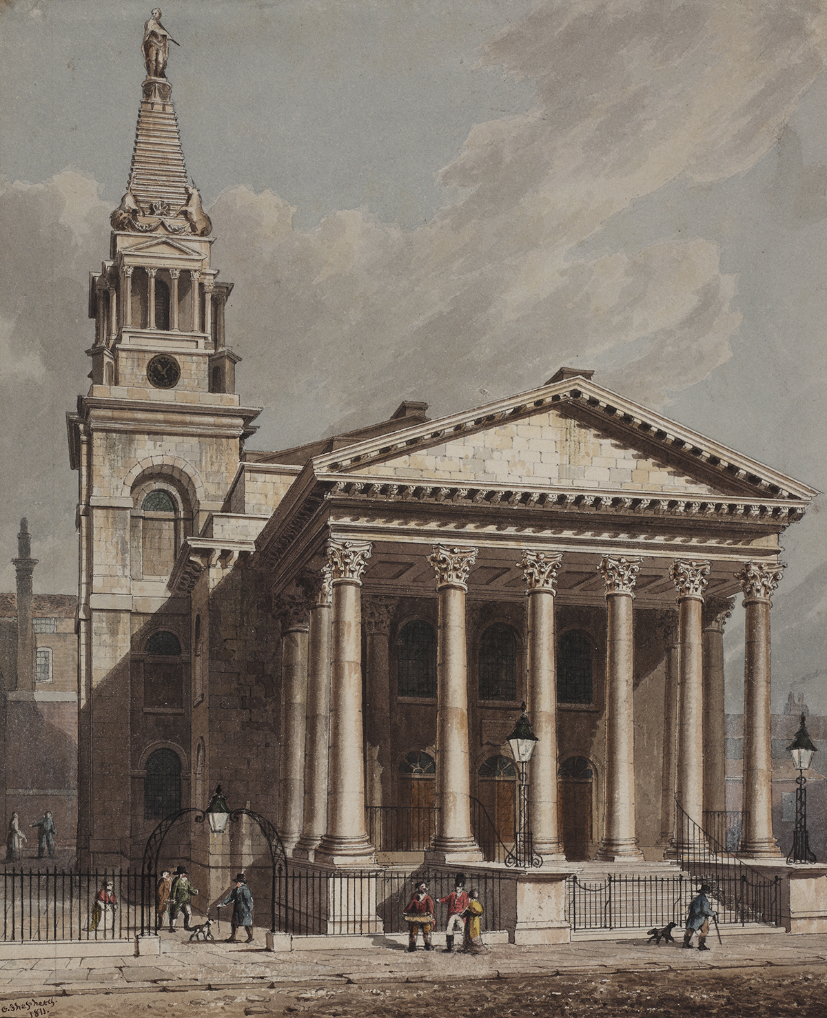 This was founded by Thomas Leverton, a distinguished architect, who designed the houses on the south side of Bedford Square, and the Resurrection Gate at St Giles-in-the-Fields Church.